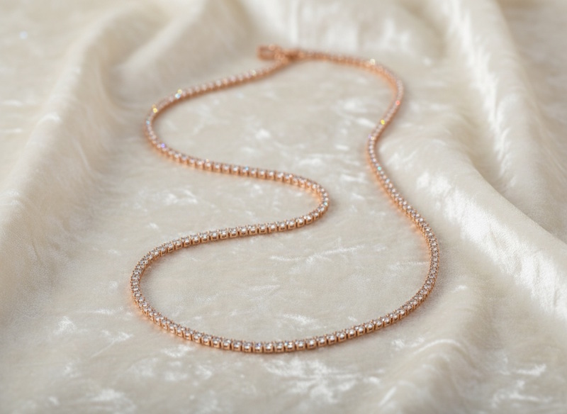 שרשרת טניס עם אבני זירקון מבריקות בעיצוב עדין ומוקפד בציפוי רוז גולד, המפוזרות באופן שווה לאורך השרשרת. השרשרת מתאימה לכל מראה חגיגי או יומיומי, והיא מוסיפה נופך של יוקרה לכל הופעה.