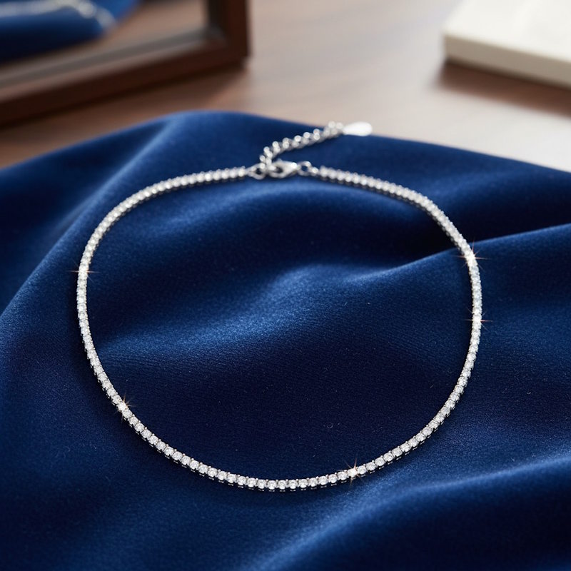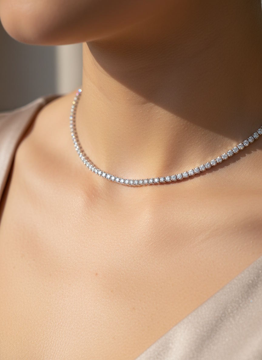 שרשרת קולר טניס 2 מ”מ עשויה כסף טהור אורך השרשרת: 35+5 ס”מ