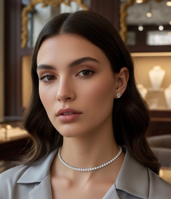 שרשרת קולר עם אבני זירקון מבריקות בגודל 1.75 מ"מ, המפוזרות בעדינות לאורך השרשרת. העיצוב האלגנטי יוצר מראה פשוט אך מרהיב, מושלם להוספת נגיעה של זוהר לכל הופעה יומיומית או חגיגית.